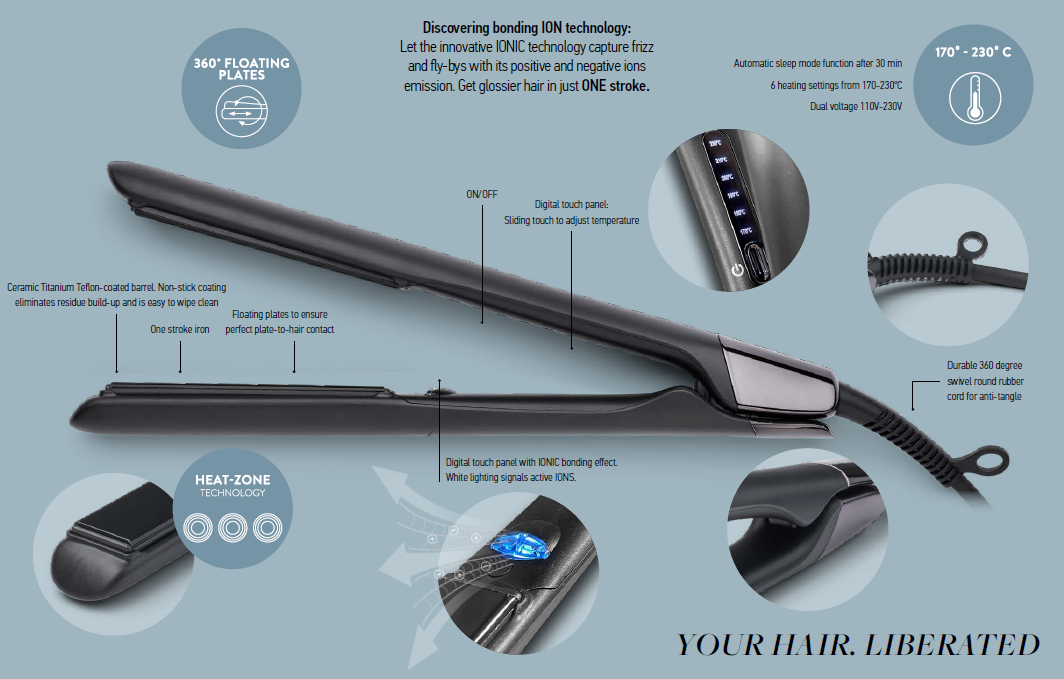 Touch-Panels, doppelt titanbeschichtete Platten, Beschichtungen aus Ölen, die das Haar schonen und Turmalin für optimale Gleiteigenschaften, MCH-Platten-Technologie für konstante Temperatur … Noch nie davon gehört??